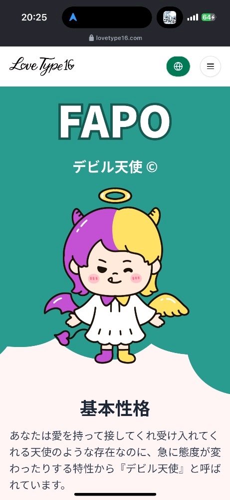 恋愛タイプの診断が出て