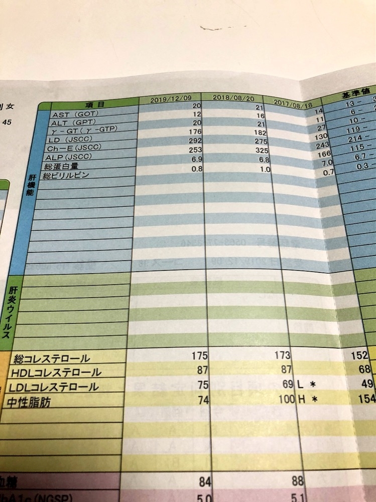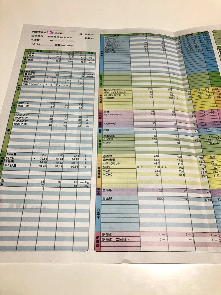 昨年の人間ドックの結果