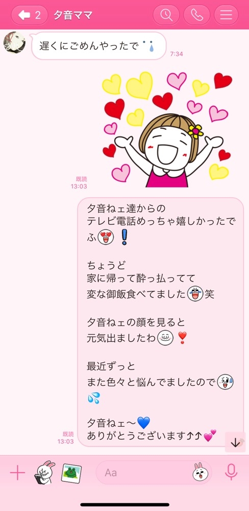 嬉しいLINE頂きましたあ