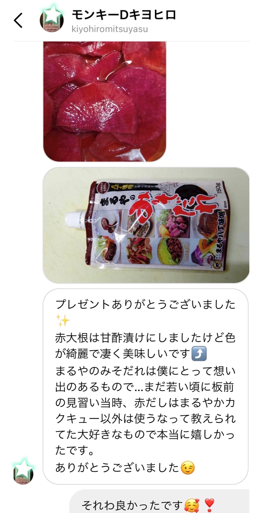 律儀に御礼メッセージ下さり
