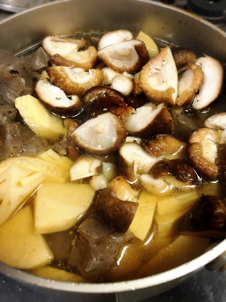 ポン酢入れて煮込むよ〜