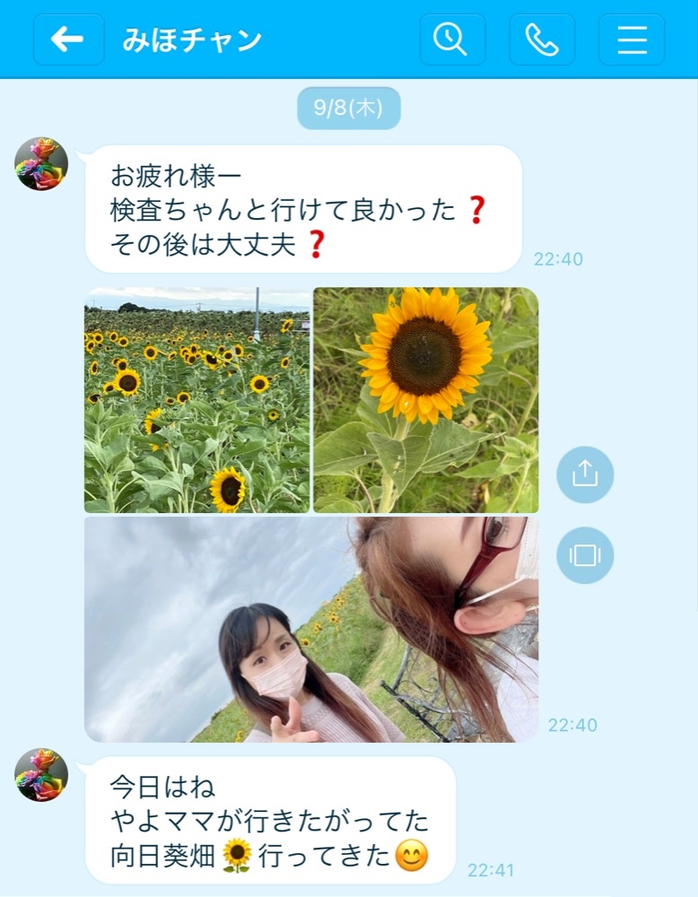 やよママと向日葵畑の写真有難う💙