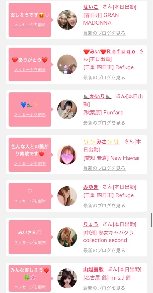 ご指名した女の子達わ