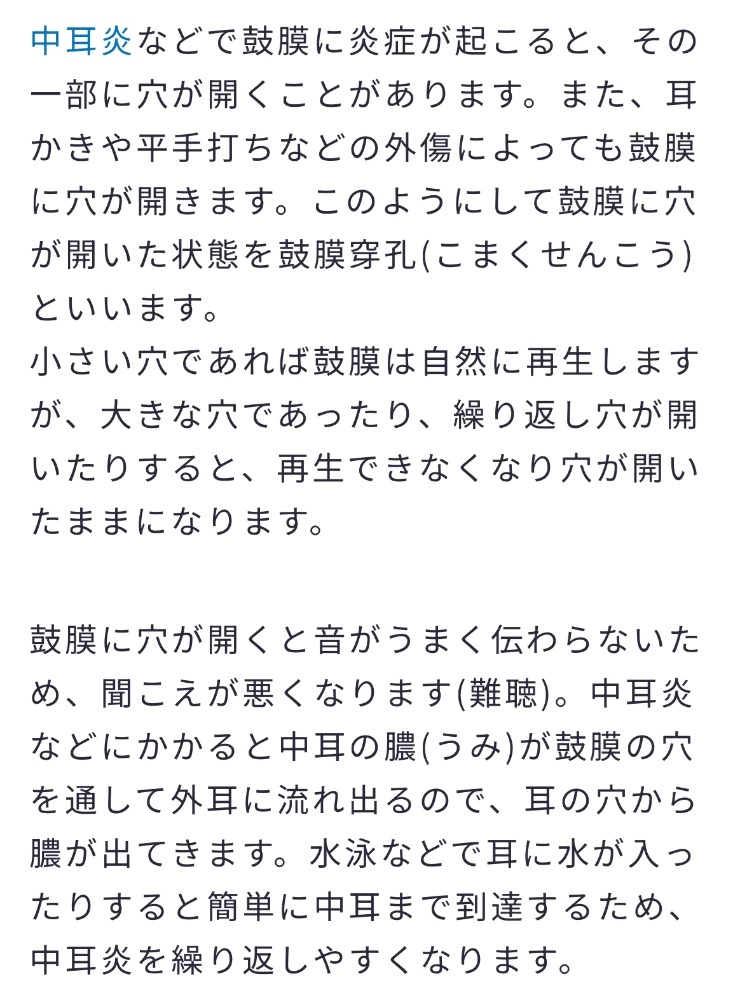 - 鼓膜穿孔になってしまったドジな私(;;)