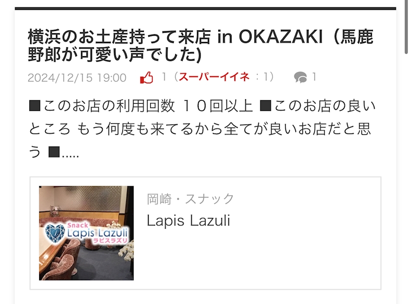 ポケパラ会員メニーナ様にわ毎回いつも感謝でーす☺️👏✨️ - ✨💎めぐみママ💎✨ - Lapis Lazuli・ラピスラズリ - 岡崎のスナック
