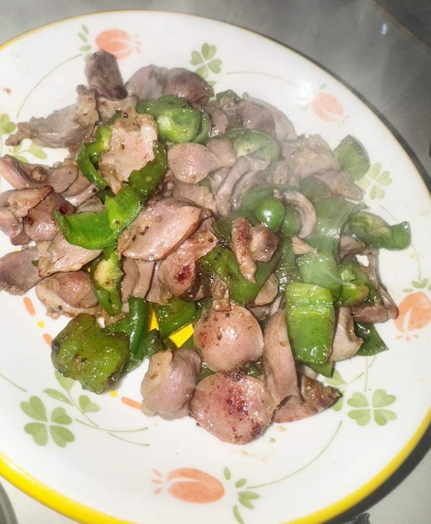 砂肝とピーマン炒め