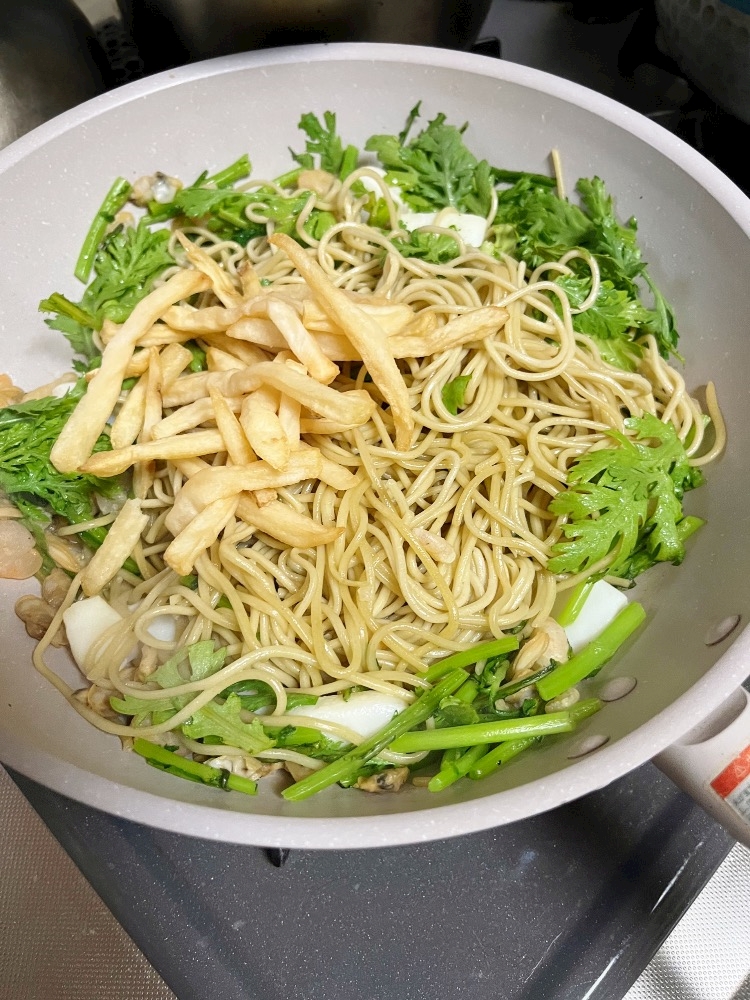 春菊入りタイ風焼きそば作りましたァ😉✨ᩚ