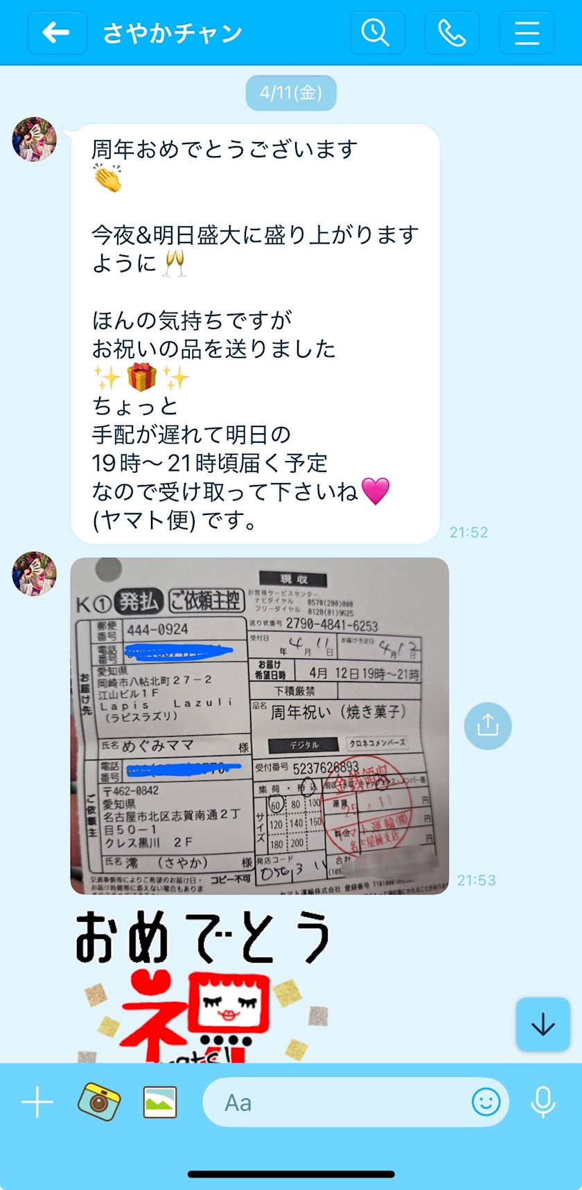 名古屋 澪 さやかチャンからプレゼント🥹🩵 - ✨💎めぐみママ💎✨ - Lapis Lazuli・ラピスラズリ - 岡崎のスナック