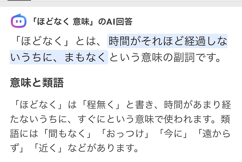 ほどなく