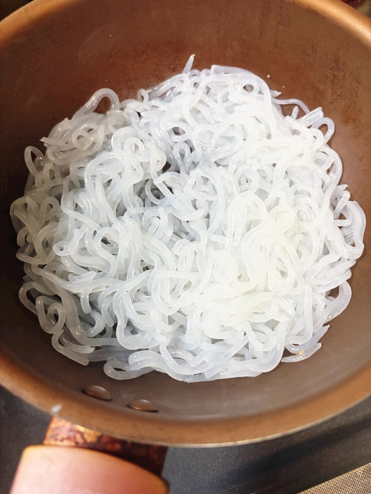 しらたきを水切りして