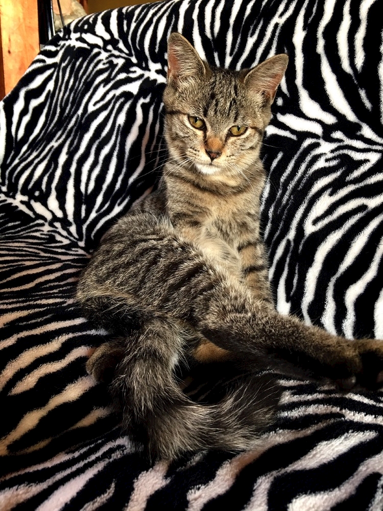 ソファーのゼブラ柄と一体化してた