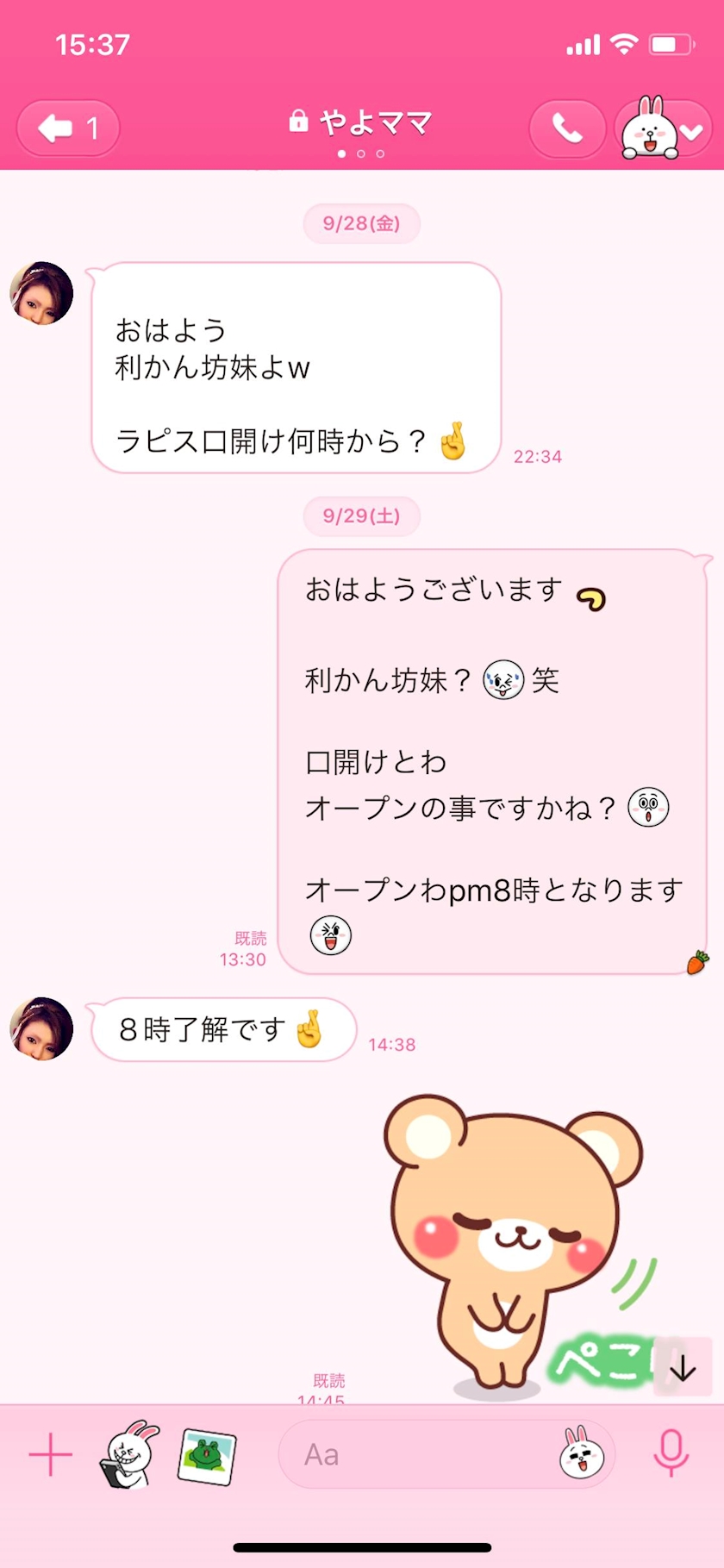 当日にLINEしたのに