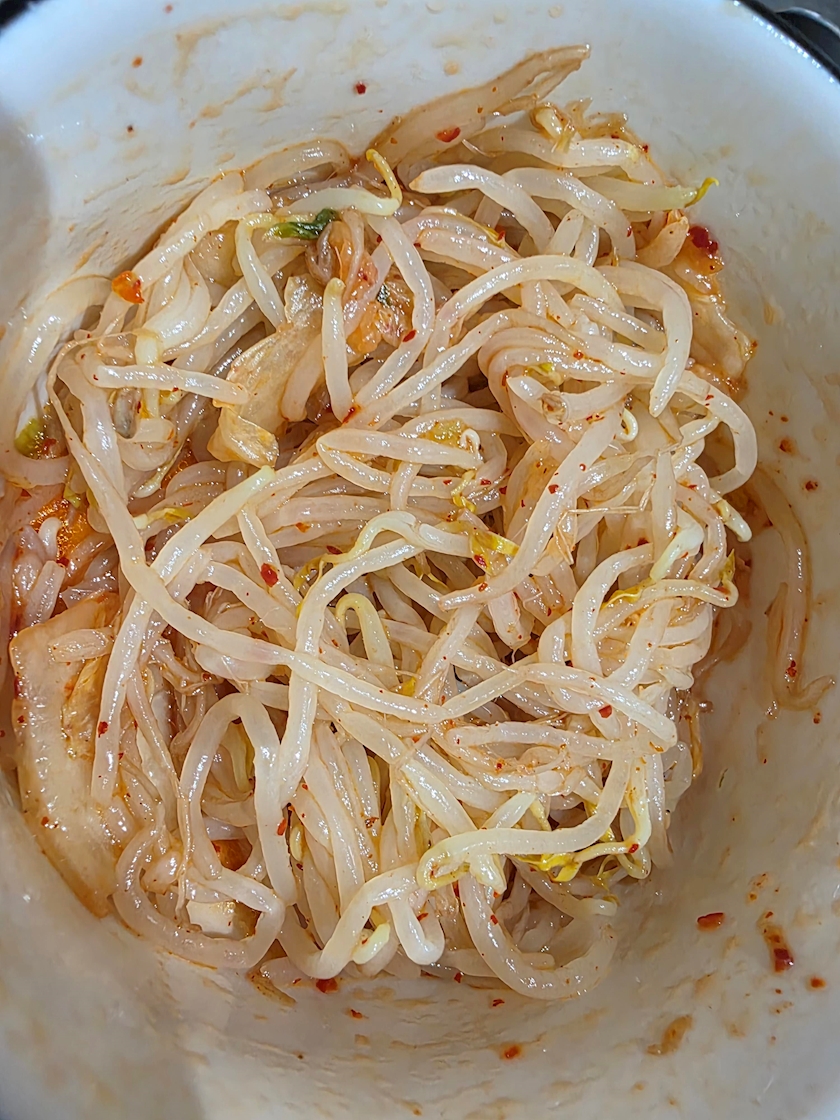 もやしとキムチのナムルもつけて