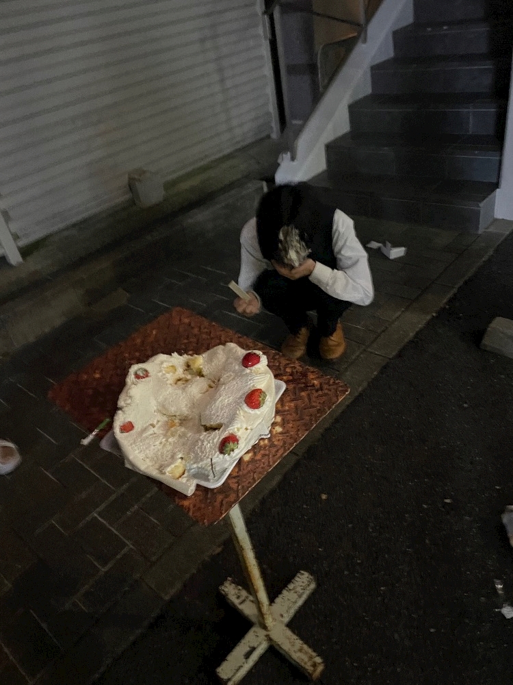 この潰れたケーキも