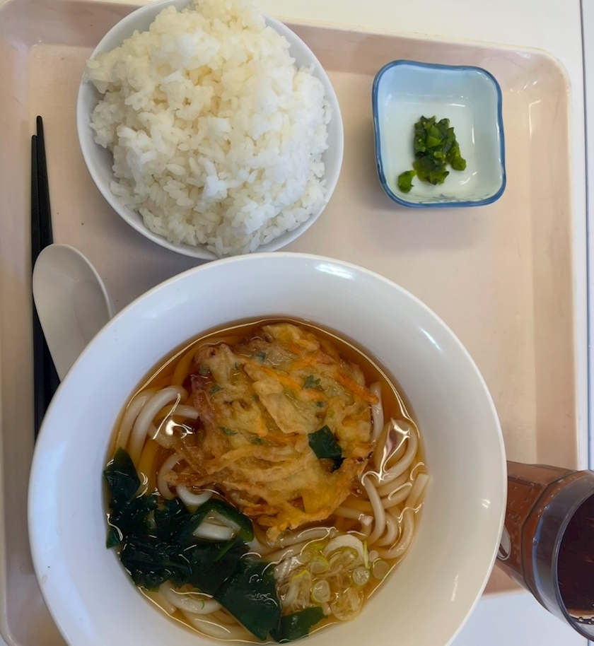 かき揚げうどんとライスだよーーん