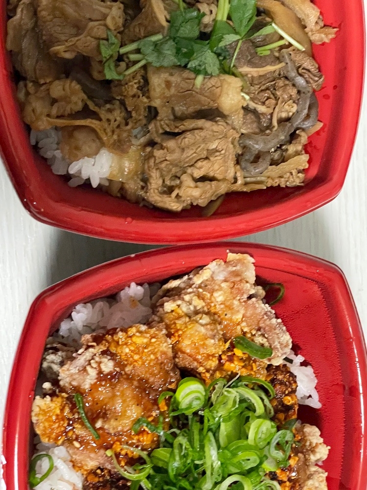 ねぎラー鶏から丼と牛すき丼と