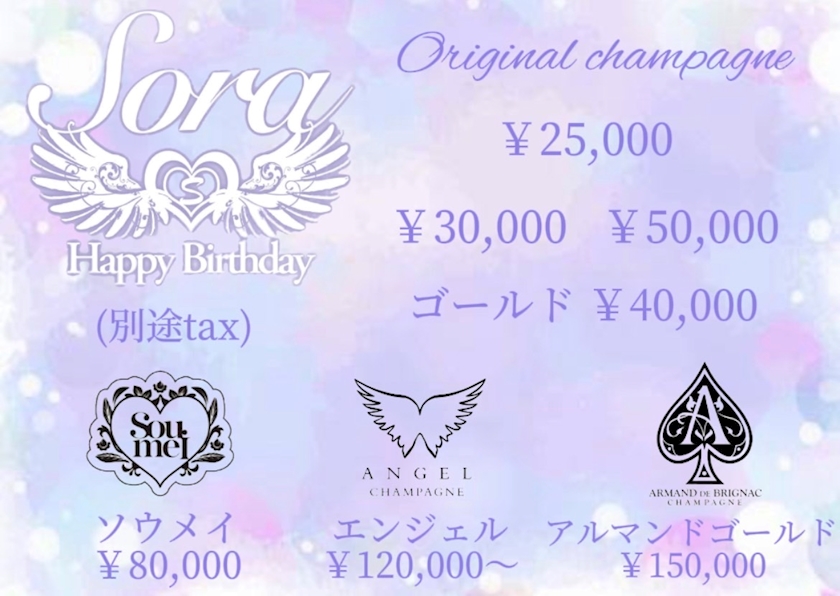 そらバースデーメニュー表はこちら🥂🫧