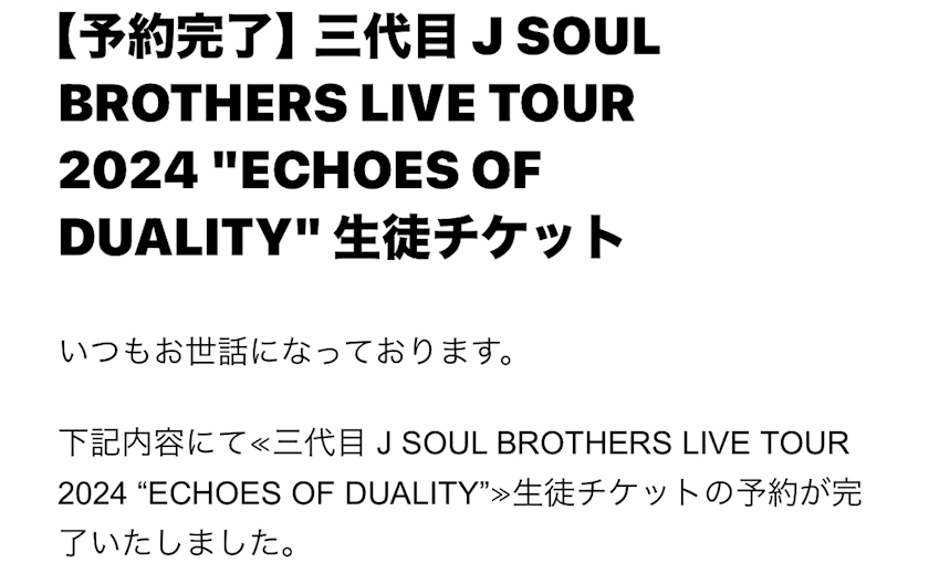 チケットが取れるってメールが来て