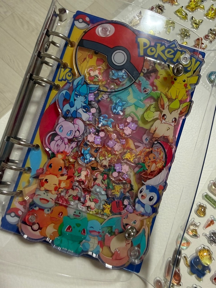 息子と二人でシール帳にシール張り替えしてます😂