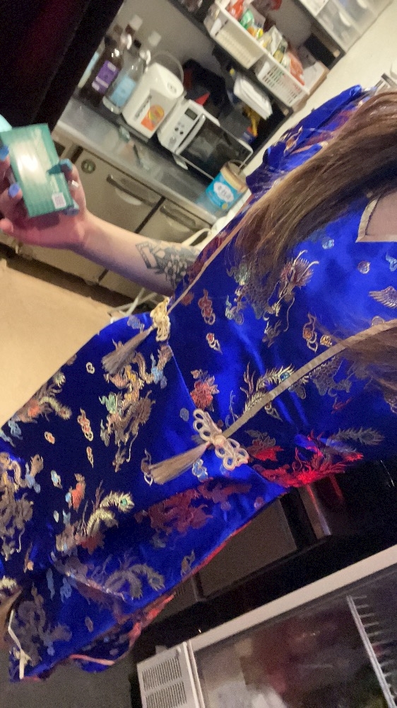 チャイナ服サイズでかくて急遽安全ピンで止めた、笑