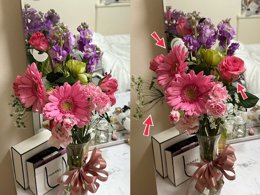 左が生けた初日で右が2日後なんだけど、
