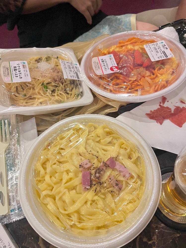 最後に〆でコンビニパスタも🩷