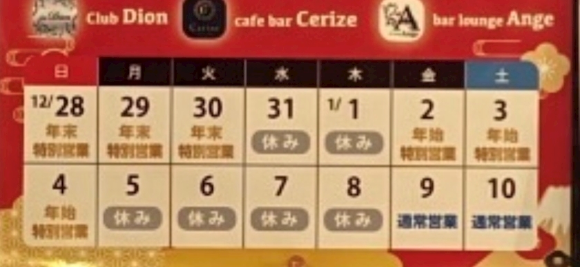 Angeの年末年始カレンダー