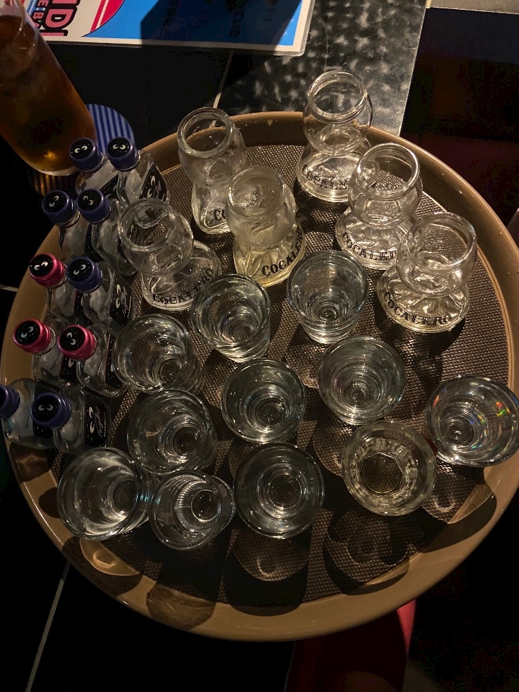 沢山のドリンク、テキーラ、クライナー、コカボム