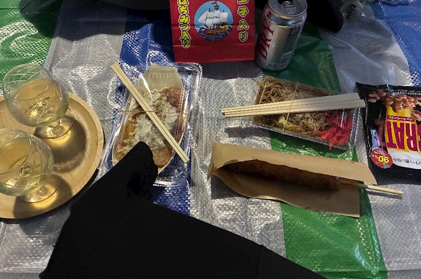 レジャーシート敷いてワイン飲みながら
