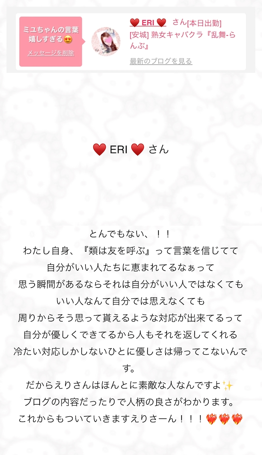 心温まるメッセージをありがとう🩷 - ♥️ ERI ♥️ - 熟女キャバクラ『乱舞-らんぶ』・ランブ - 安城の熟女パブ/熟女キャバクラ