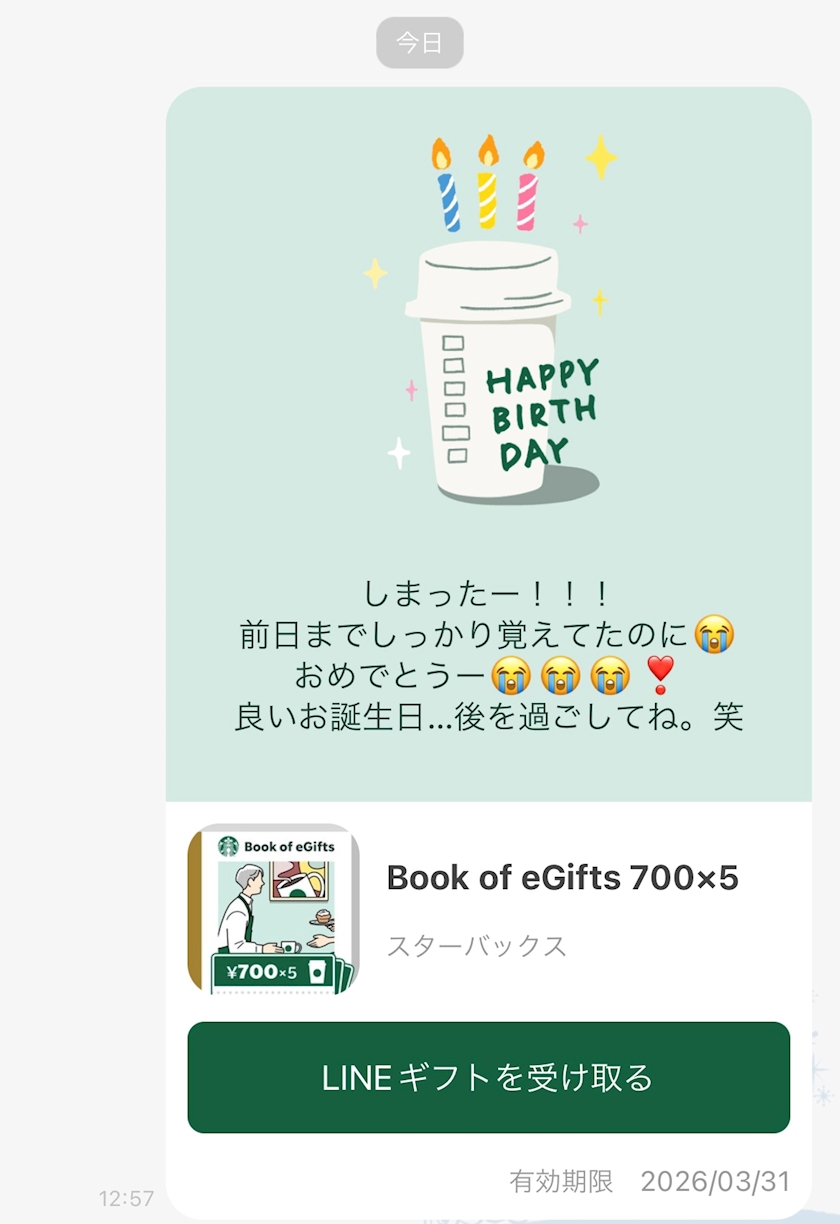 しまったお誕生日だった友達におめでと言い忘れてた😭