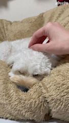人の布団を陣取る犬🐶