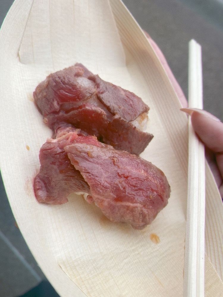 やっぱり犬山城下町の肉寿司めちゃくちゃ美味しい〜〜🫠🫠💜