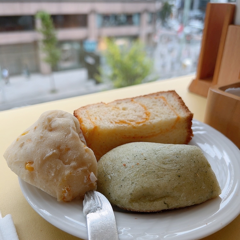 一階に売ってる沢山のパンの中の
