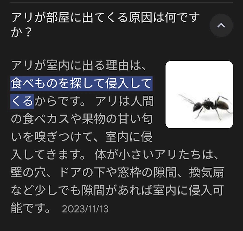 でもゴミ袋にちゃんとゴミを入れてたのにアリが家に