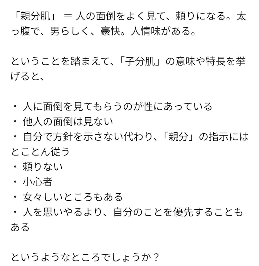 生まれながらの子分肌っていう意味を