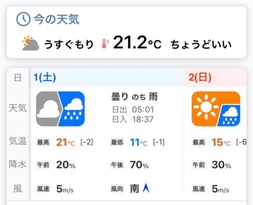 なんかもうちょっと晴れマークだったのに