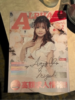 この度ALPHA(アルファ)と言う夜のお仕事の情報誌の表紙を綾が飾らせていただきました