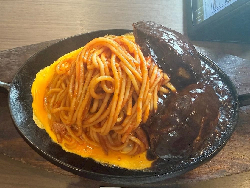 ハンバーグWナポリタン大盛り+たまごひき