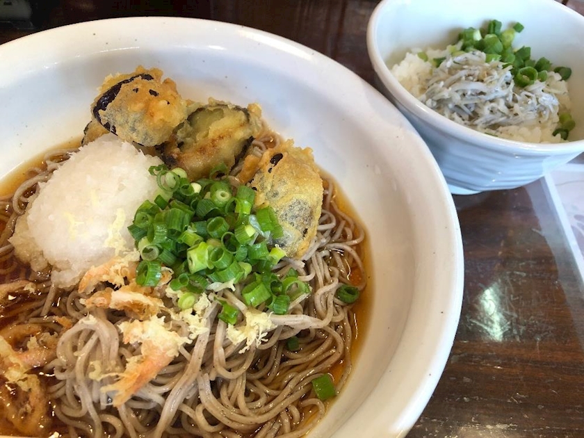 なす天つきおろしそば+ミニしらす丼
