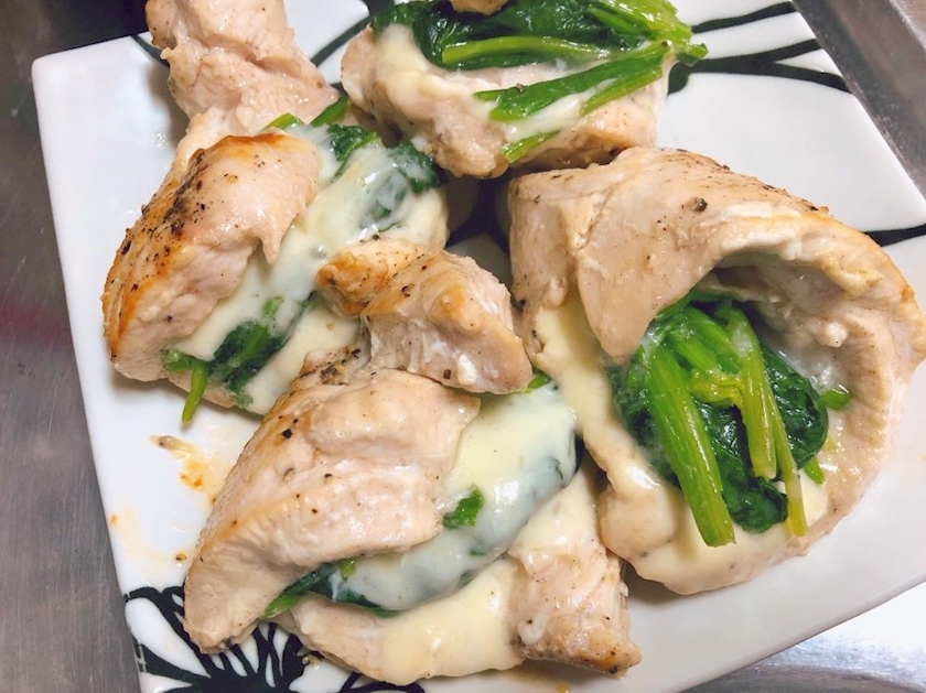 鶏むね肉のほうれん草チーズはさみ焼き🧀