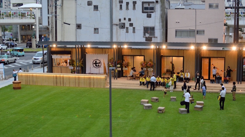カフェが併設された芝生広場が作られたんですが