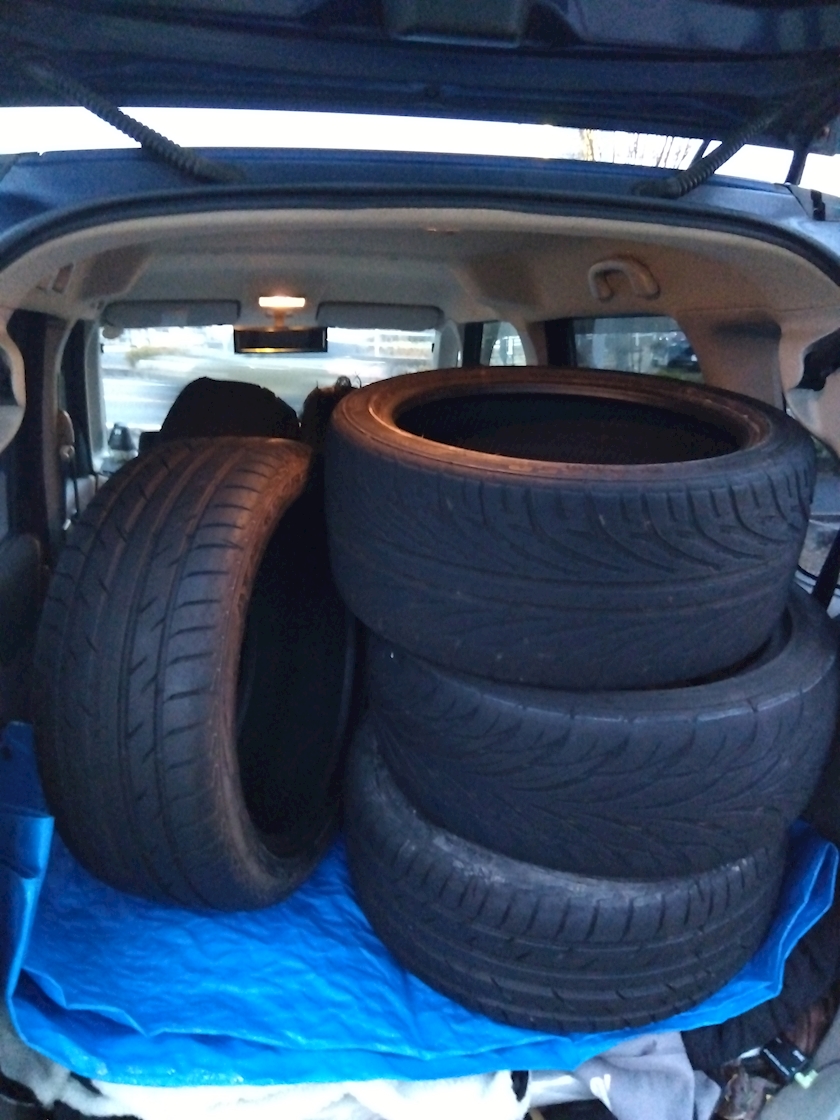 タイヤやらを運ぶのに2往復したから日が落ちちゃいましたよ…