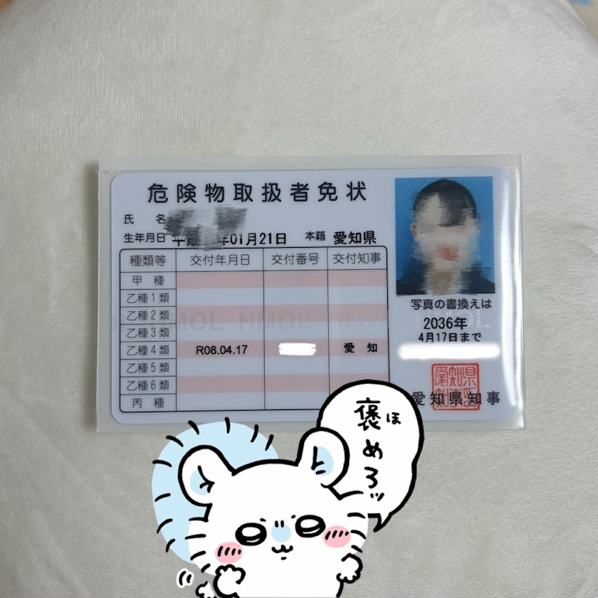 今日ね、ようやく危険物取扱者の免状届いたの✨