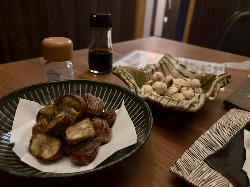 秋刀魚のお刺身や銀杏焼いたやつとか珍しい栗の唐揚げなど🌰