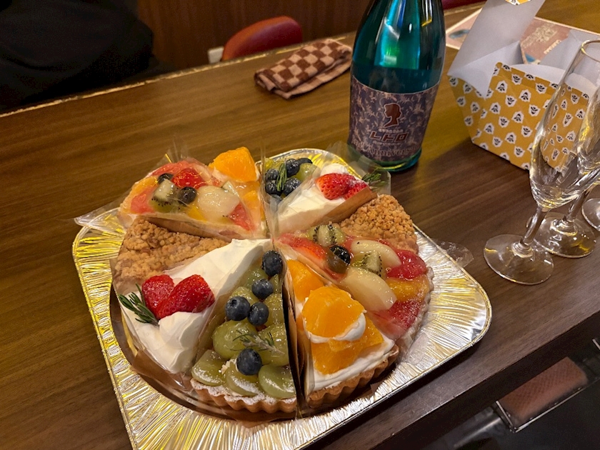 2周年!のお祝いに!ケーキとシャンパン!