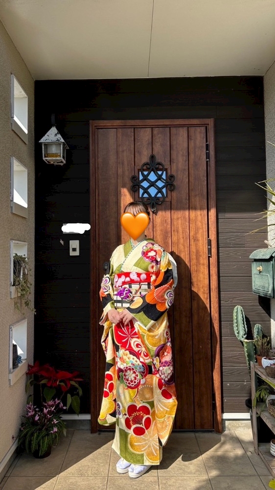 緑色の振袖着たよ💚