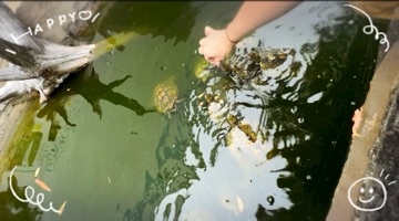 亀にご飯あげた~🩵