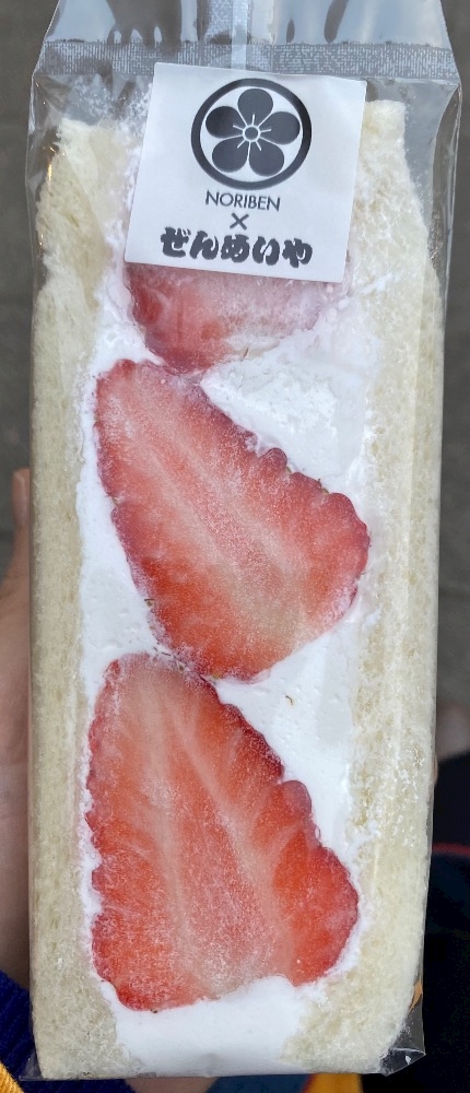 金山のJRの改札のキオスクで、果物のサンドイッチを発見して、買うか悩んだ末に買いました😆