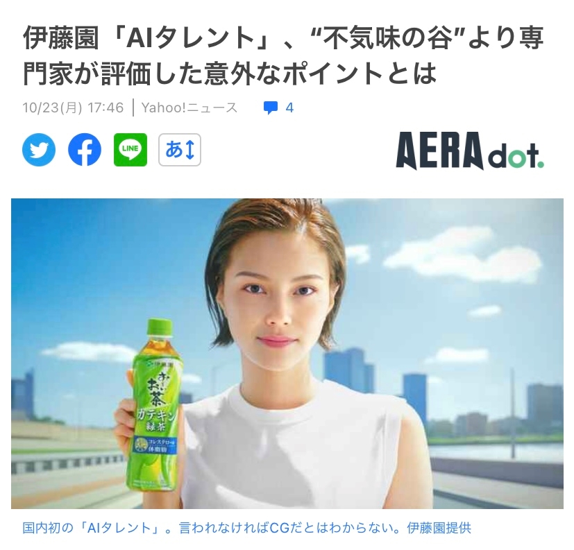 このお茶のCMのタレントさんAIらしいです😱